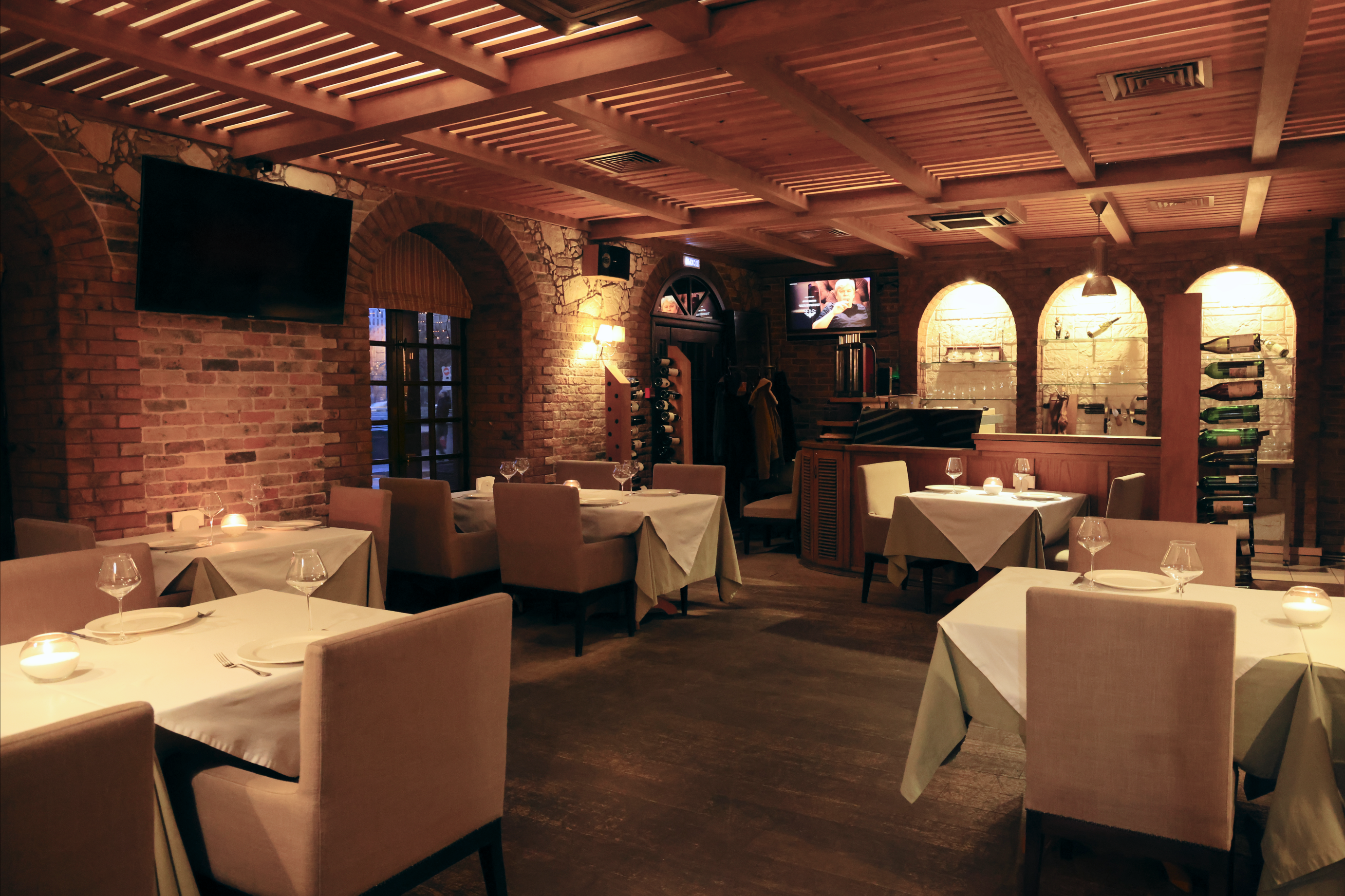 Пространство оснащено профессиональной караоке-системой AST-100 с актуальным каталогом песен и двумя телевизорами.